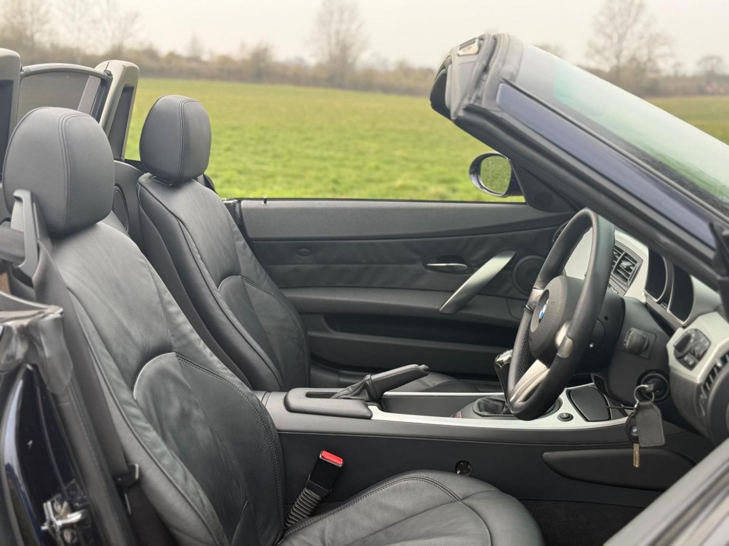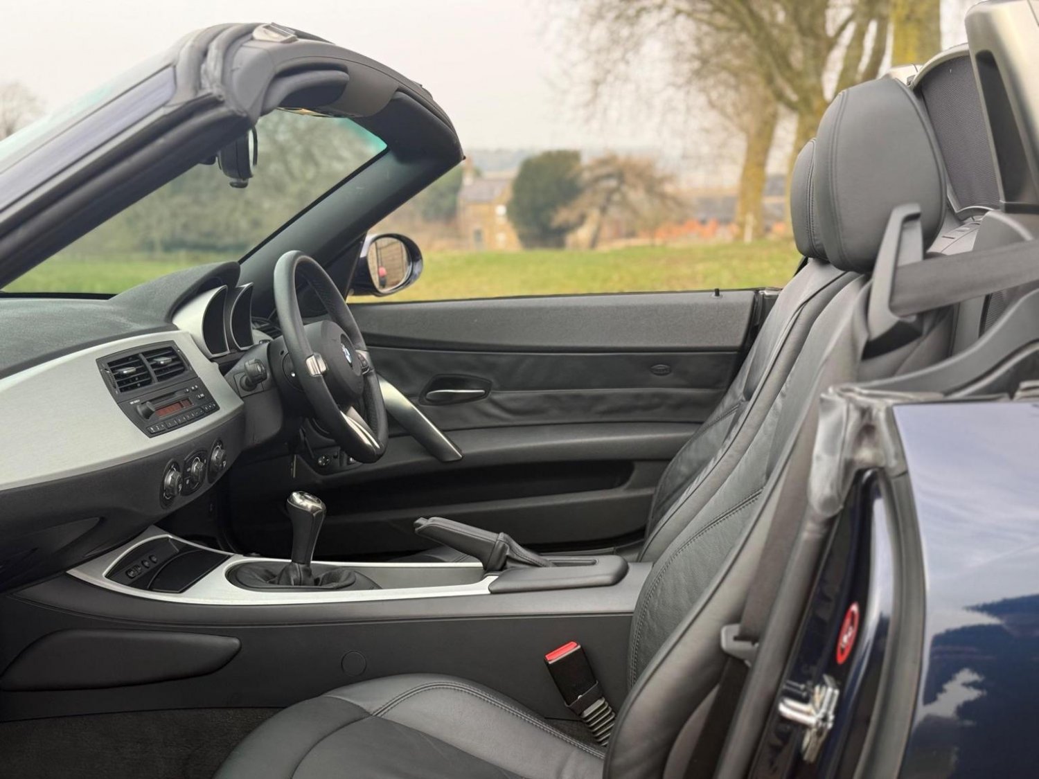 This Z4 comes with a good specification. This includes: black leather electric seats, BMW individual midnight blue metallic paint, wind deflector, rear parking sensors and 18inch alloy wheels.